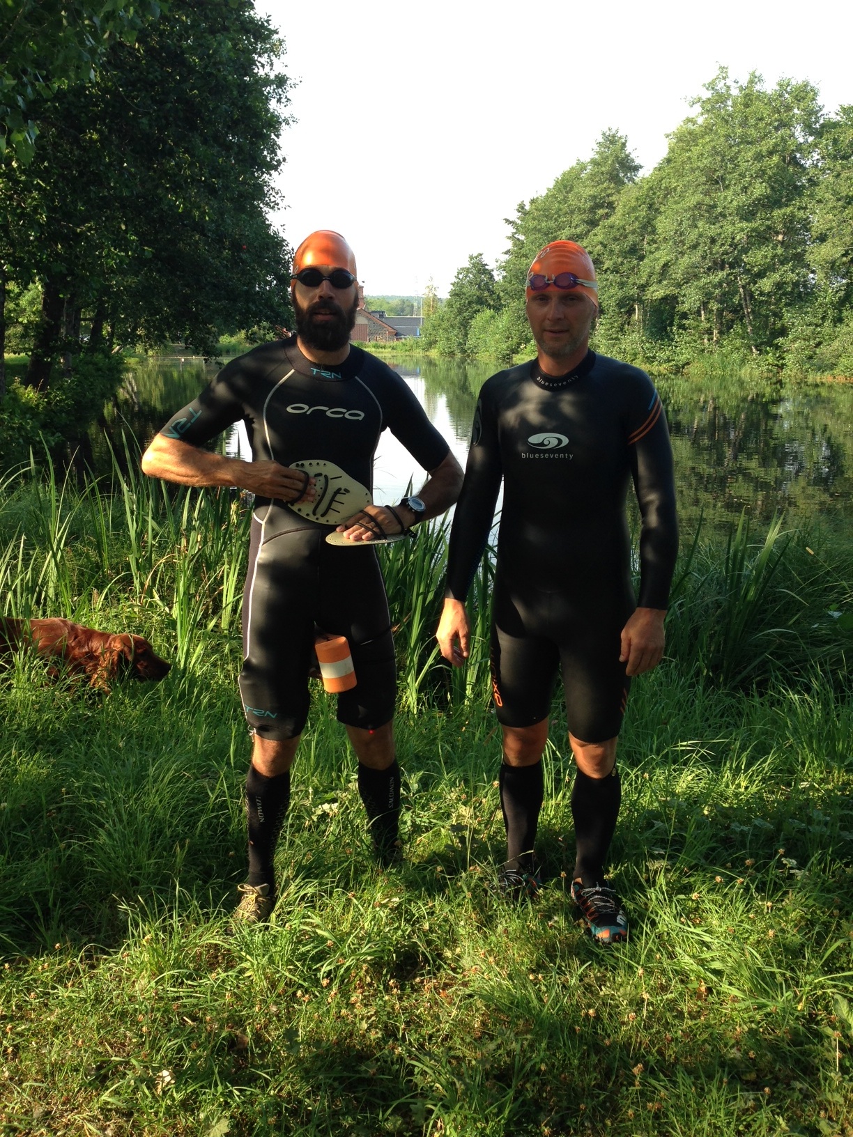 Så här kan det se ut när två stycket lite småtokiga män har fått en idé om att simma och springa genom Hofors Kommun. Okej, det är Magnus idé(och Simfenans). Det pågår research inför nästa års Swimrun-tävling i Hofors. Denna dag startade dom vid Kallbadhuset och simmade ankdammen och förbi Time, vidare mot Tolven och Hyen. Ankorna blev mycket förvånade, för att inte säga chockade när dom kom plaskandes. Stackarna, dom har nog precis hämtat sej från förra årets HAR-moment, luftmadrassimningen. Bilder från den tävlingen finns här